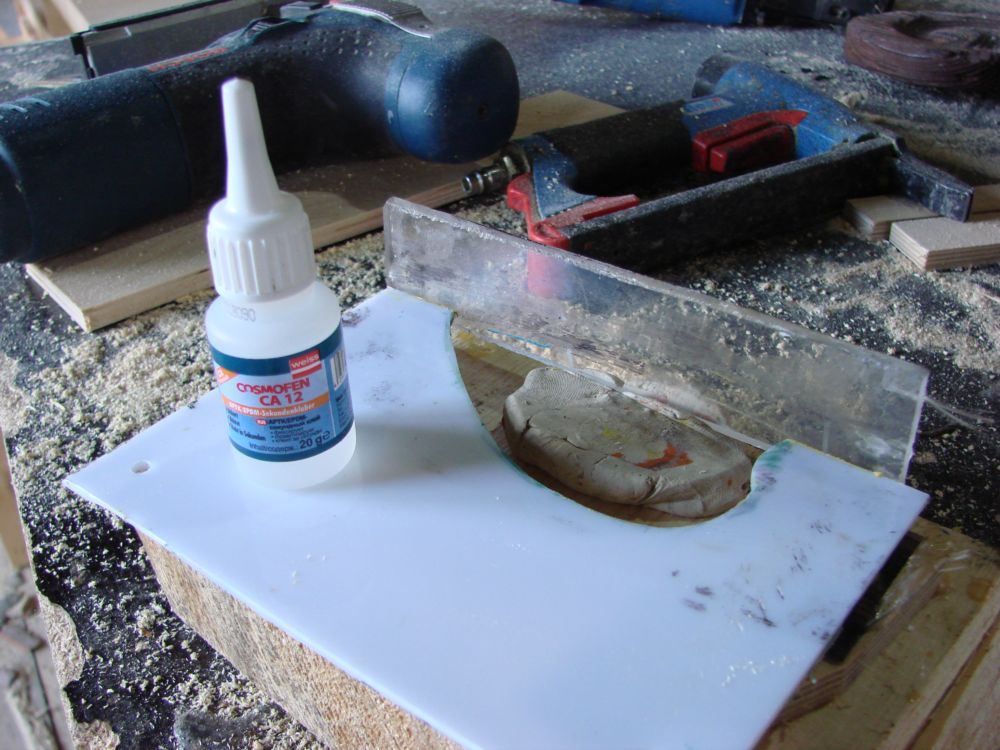 ЗЫ. Писали сто нада переворачивать болванку не снимая её с оправки и липить вторую половинку матрицы - так не получиться так как оправка с акрила имеет толщину и получаеться асиметрия. Я делал отдельно две части плавника, и не заморачивался с выставлением болванки на в оправке.