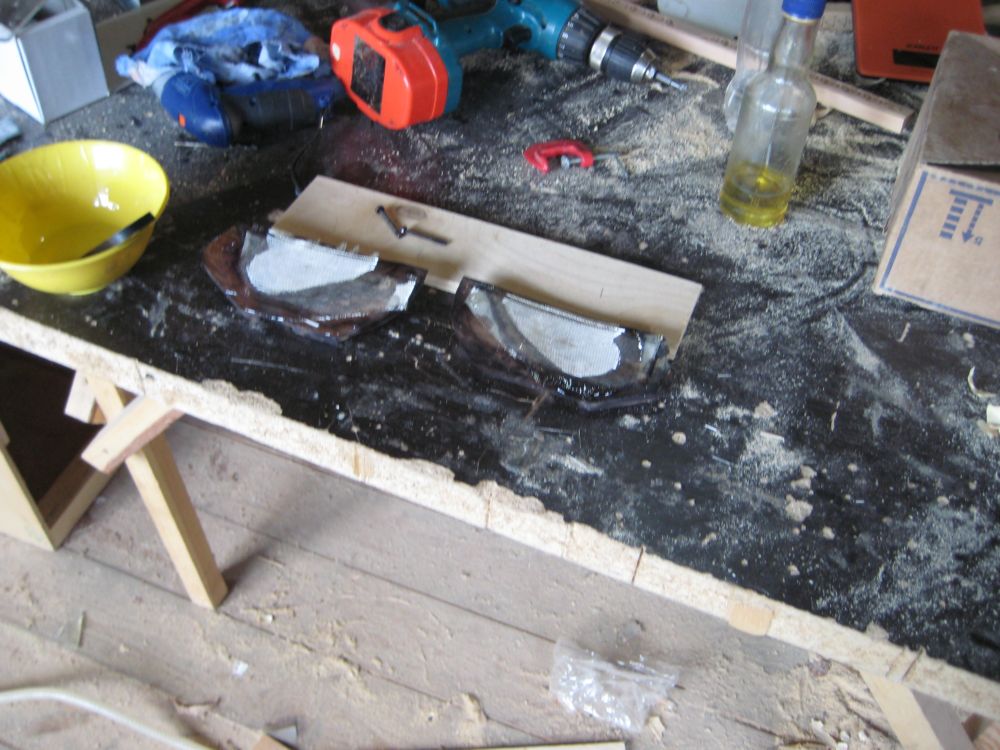 опаливаем стекло ткань стр. феном вырезаем ткань , бодяжим эпокситку.