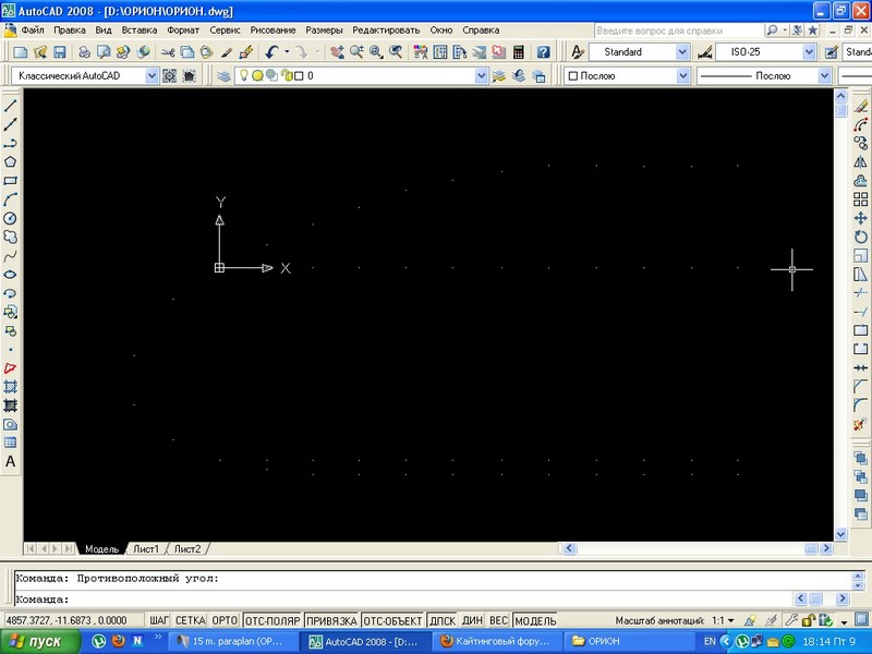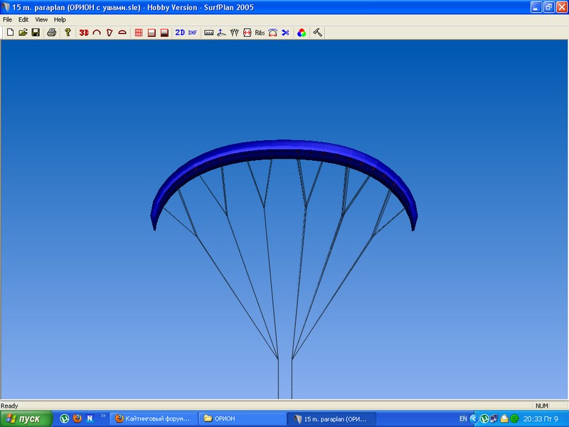 наконец выкупил ОРИОН Зайцева и начал на нем свои эксперементы... Для начала снял форму и перебросил ее в Автокад, просмотрел там какой профиль, он оказался наподобие парашютного, поэтому летает не очень и сыпется страшно, так вот буду туда ставить другой профиль, может и форму немножко поменяю будет ПРАКТИКОН или ЮРИОН Laughing шутка