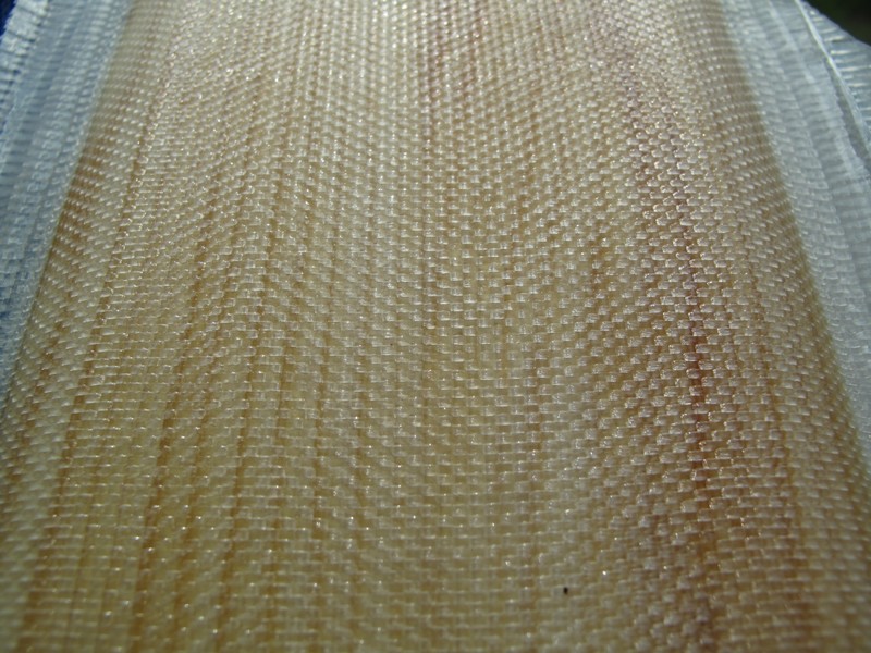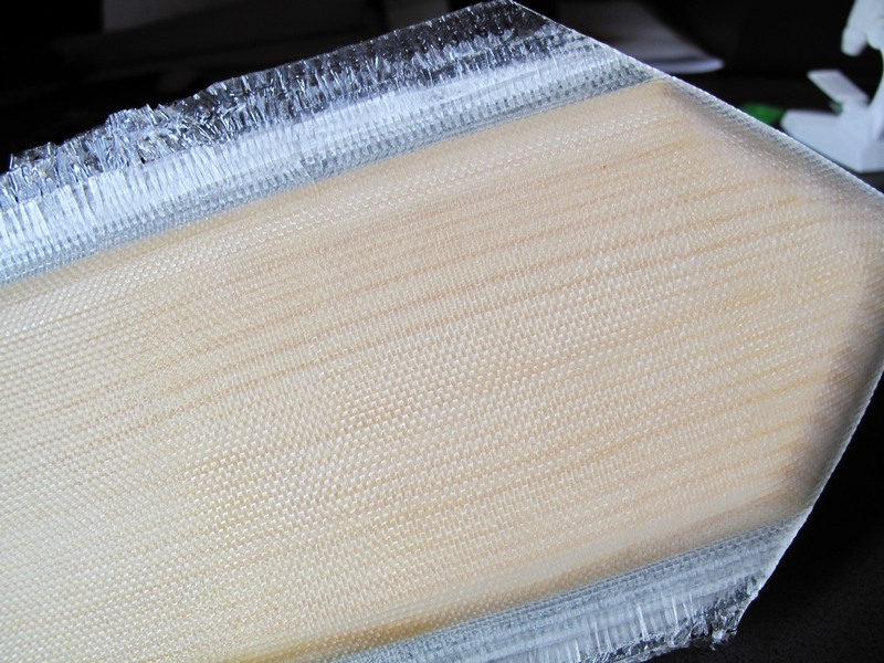 Расстроился. Один образец разлелил на составляющие не дожидаясь схатывания смолы. То-есть оторвал стеклоткань от сердечника. После высыхания смолы, я был удивлен, на сколько мало смолы в стеклоткани. Она продувалась ртом, без малейшего сопротивления. Куда делась смола? И тут меня осинила. Она впиталась в сердечник. после того, как вся ткань в пакете пропиталась и я отсоеденил вакуум, пакет был осалютно герметичен, но смола продолжала впитываться в сердечник. По истечении 20-30 минут ткань начинала белеть. Вот уж не думал, что в дерево высосет всю смолу.