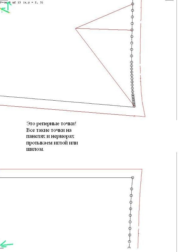 Чутка листаем. Нажимаем на просмотр с конца. возвращаемся на пару листов назад. Должны видеть подобную картинку нервюры и нанели проекта с точками.