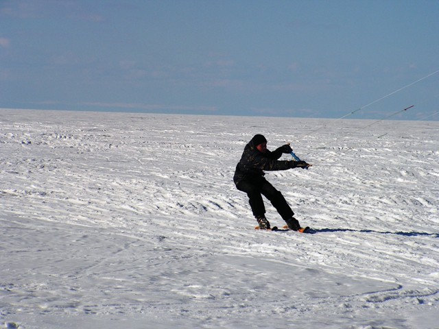 ...продолжайте на бордах катать, начнёте прогрессировать, катать на переднем канте в разные стороны, потом начнёте всякие трюки делать...борд легче и безопаснее + ноги не вывернете. Да и отдыхать на нём проще - лёг, кайт в верху - отдохнул, махнул кайтом - поехал. А когда прыгать начнёте -не остановишь вас. И поверьте - это будет очень скоро. К тому же летом на воду после борда проще переучиваться. Так что, покупайте ещё один борд. У нас как то к лыжам всё меньше и меньше народу подходит. Даже подумываю распродать лыжи.