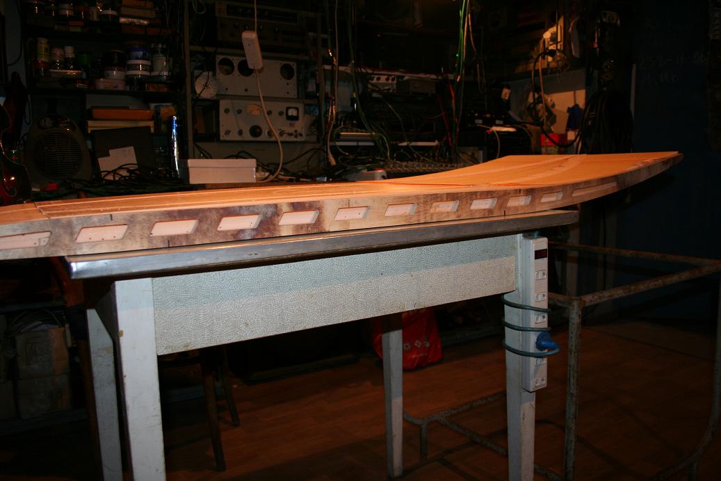 Склеивал стати уже на стапеле, чтобы задать первоначальный рокер сердечнику. После высыхания, рокер "отыграл" 5-10мм.