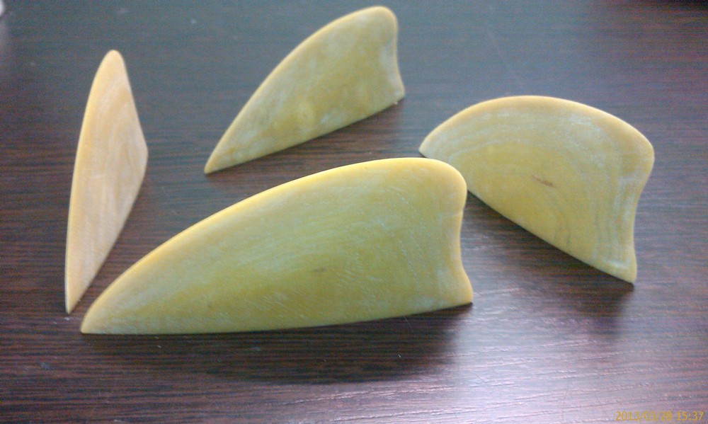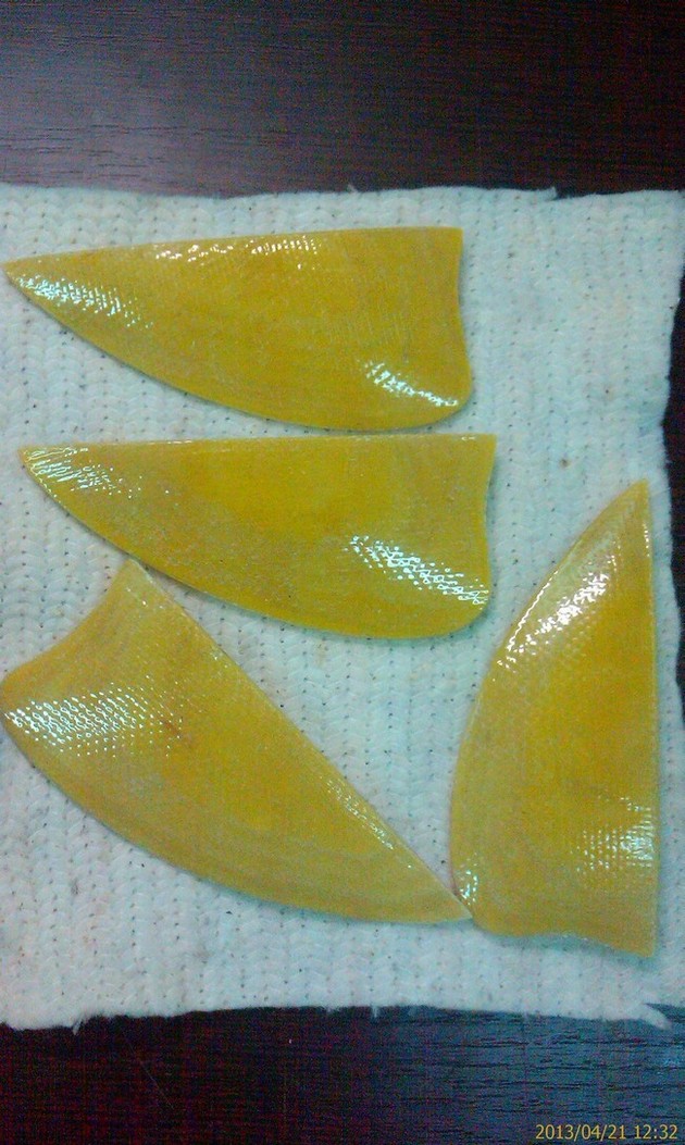Чего замарачиваешься , для пробной доски сходи купи пластиковые разделочные доски и вырежи себе какие надо плавники.
