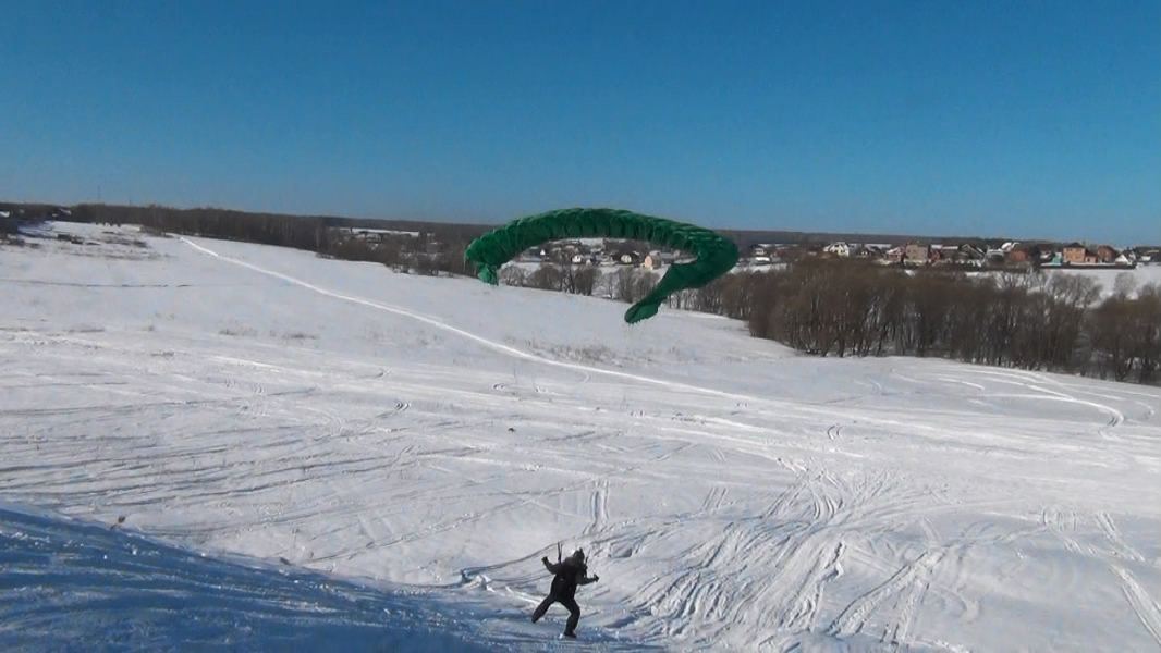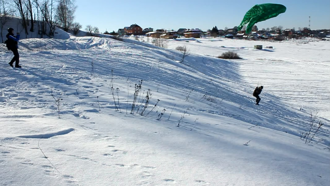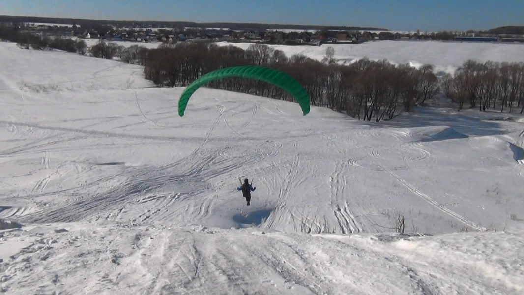 А вот тут хорошо видно, что центроплан несет, а сложенные уши болтаются позади (пилот в кадре летит, просто на фоне снега это плохо заметно):