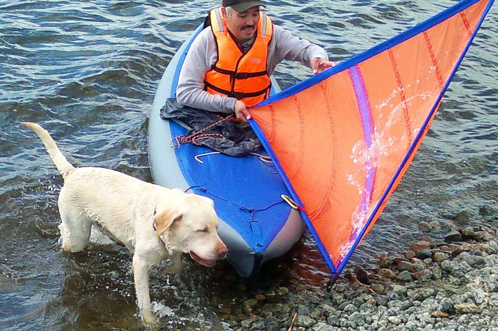 В сложеном виде компактен, позволяет ходить до галфа и даже еще чуть круче,на несколько градусов подняться против ветра.