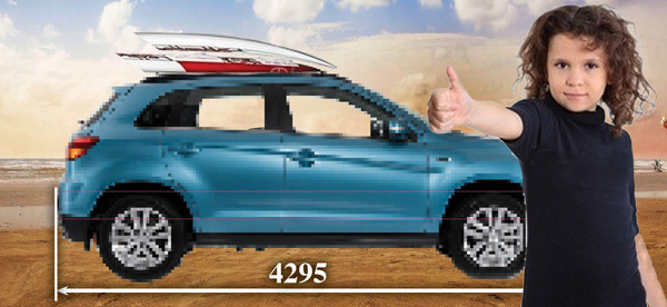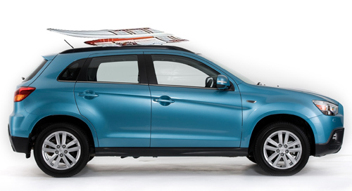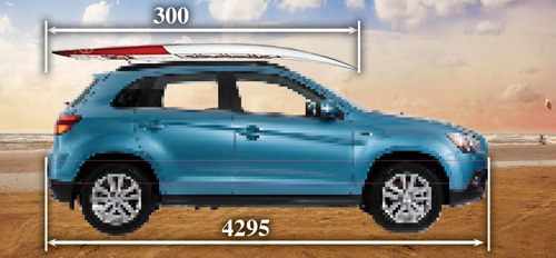 Крыша маленькая Mitsubishi ASX, доска закрепленная на крыше будет торчать и с спереди и сзади.