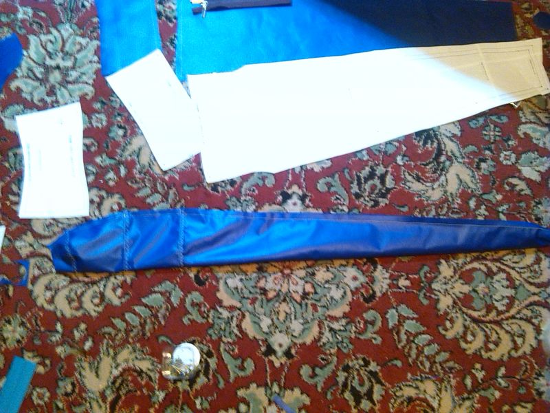Сразу купил пучок молний, липучки метр, ленту попрочнее 3х цветов. Синяя и белая пойдут на крепление строп по краям, белую под купол пришью, для складывания кайта на воде.