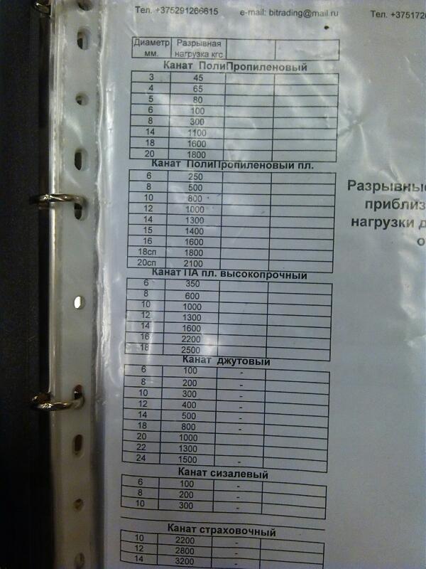 Ходил сегодня по магазинам, искал стропы. Наткнулся на брошюрку по разрывным нагрузкам