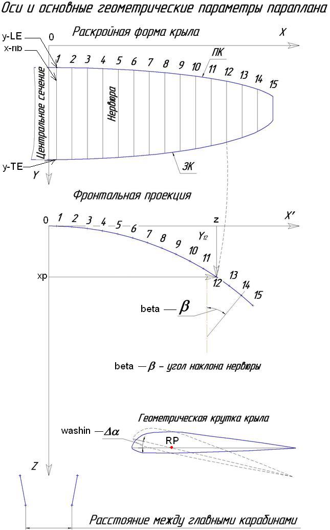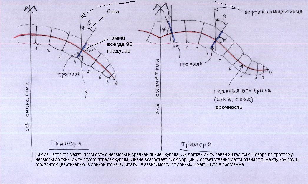 Как определить точный наклон каждой нервюры на угол(beta), как определить точно, есть может формула или еще какие-то способы. И что такоена рисунке угол(gamma), т.е.на рисунке не совсем понятен угол gamma к чему привязан и что мерять (нервюра и угол между нижнем полотном или арочностью в хорде RL):