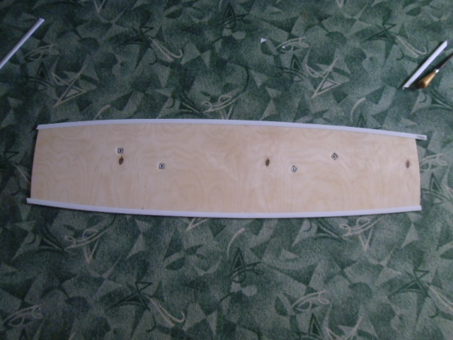 итак: 135*35 см,рокер 4 см, конкейв ...думаю небольшой получится( завтра проверю), один слой 6мм. фанеры, 2 слоя эпоксидки со стеклотканью снизу, 2 слоя вверху, закладные сделал только под петли, на ручку...просто не захотел. вместо ручки будет 6 мм репшнур альпинистский.