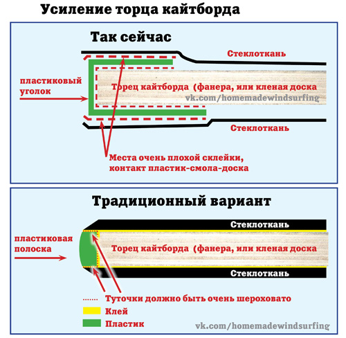 Не надо так много парится. Кант можно вообще не делать. Или сделать его намотав несколько слоев стеклоткни-ленты на торец доски, шлифануть, потом общие один-два слоя и бегом на воду, время идет, не успеешь покататься, не трать время. Народ вообще ничего не проклеивает сверху и катается. Расклеится через 2 месяца - выкинул, выпилил еще и снова на воду! Банзай!