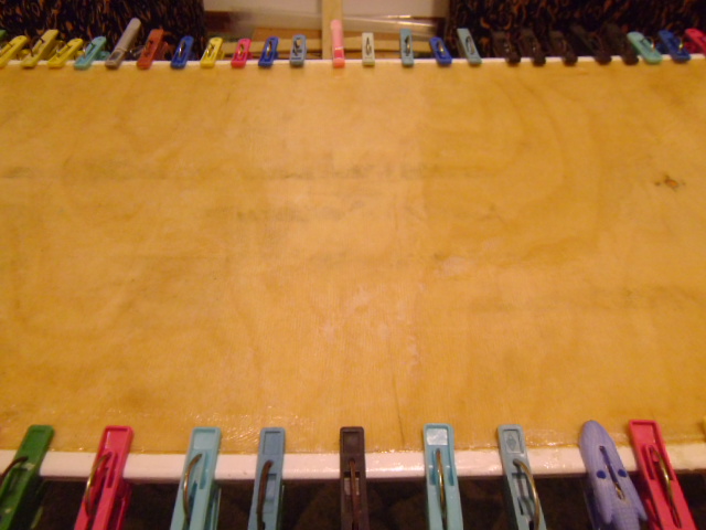 доска пока ооочень эластичная, поэтому досушиваться будет на всякий случай с грузом в центре , при поднятых корменосе(или носекорме)