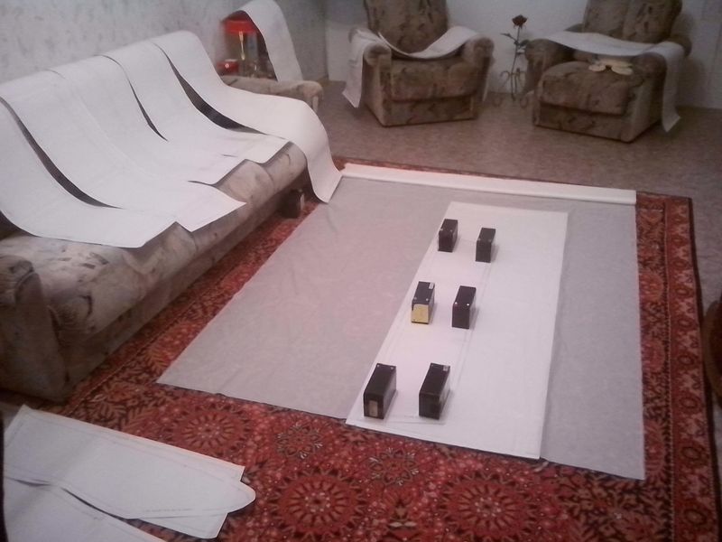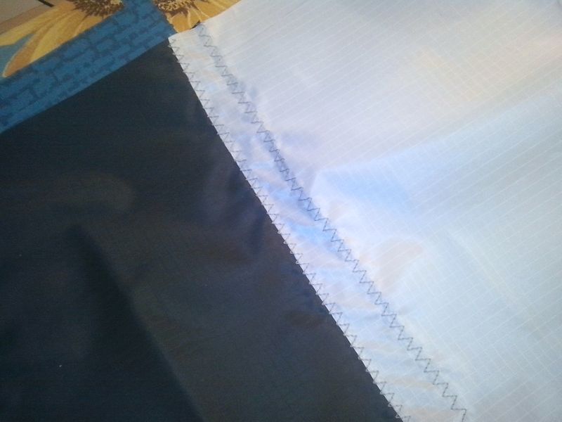 ткань взял таффету PU-1000 R/S. решил сделать верх рисунком по лоскутной технологии. пока сделал раскрой, подготовил панели верха, сшил по цветам. далее усиление нервюр и сшивание.