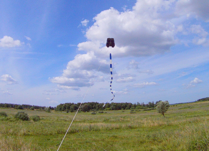 Вчера выходил на поле, запускал тестил трубу диаметром 20см и длиной 30м (вес 1кг) Smile Сперва ветер был метра 3, цеплял на верёвку в 25м от кайта. Тяжело, но всёже взлетел мой старенький полиэтиленовый флоуформ 1,25м2. Smile Потом ветер подраздулся метров до 5...6 и я ради интереса решил подцепить трубу в качестве хвоста, к задней кромке кайта. И ничего, полетел как миленький! Very Happy