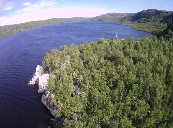 Да 2-3-4 нервюры укороченные. Все края прошивал брючной тесьмой, кроме швов внутрь. Вес получился 350 грамм. Когда заканчивается тканька, начинается дизайн. Шил из панелей старых кайтов. Дал вторую жизнь крылышкам. В наших краях существует яхтклуб, в котором с мальства занимаюсь. В воскресенье устроили небольшой поход на яхтах на мыс "Белый камень". В заводи, на якорях две яхты стоят. Озеро называется "Куэтсъярви". Решил проверить змея. Результатом доволен.