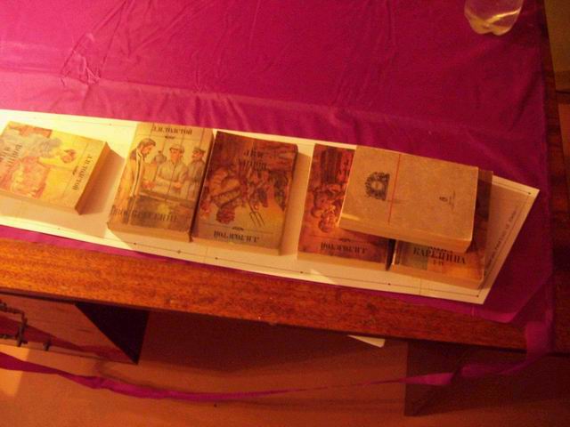Естественно ткань нужно придавить по краям чем-нибудь тяжелым, если есть складки - прогладить утюгом через влажную марлю, вытереть сухой тряпкой (иначе лекала намокнут и покоробятся), разгладить, наложить лекала, придавить их - очень хорошо подходит "Война и мир" карманного издания .