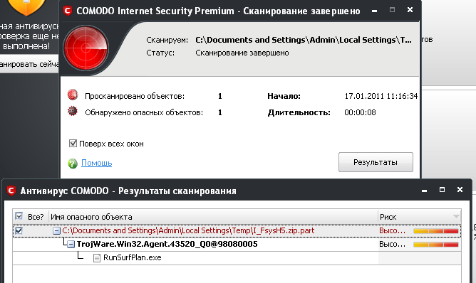 Кто может объяснить как себя должен вести RunSurfPlan.zip , который я даже не открывал, а просто убрал из компа. Вот результаты первой проверки диска С: