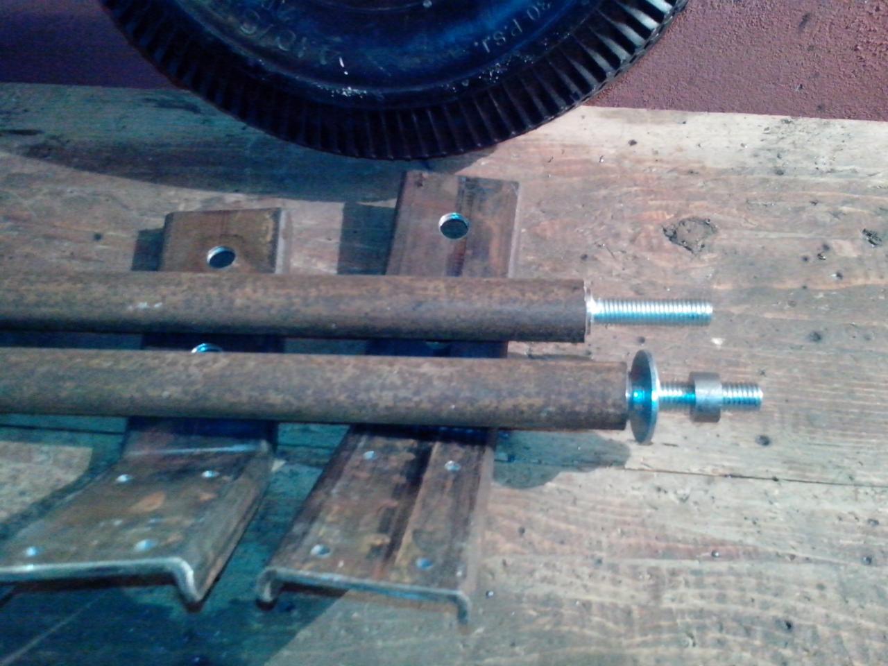 Обточил головки болтов и вставил внутрь трубы. Наружный диаметр 22 мм, внутренний 16.2 мм.index.php/fa/12158/0/index.php/fa/12159/0/ Болты обварил. Трубы отдал проточить под подшипник диаметр 20 мм ширина 65 мм (на самом деле ширина ступицы колеса 67 мм, но я оставил зазор, чтобы можно было шайбой поджать подшипник). Решил вваривать болты т.к. при использовании самоконтрящихся гаек с пластиковой вставкой не требуется принимать мер против отвинчивания.