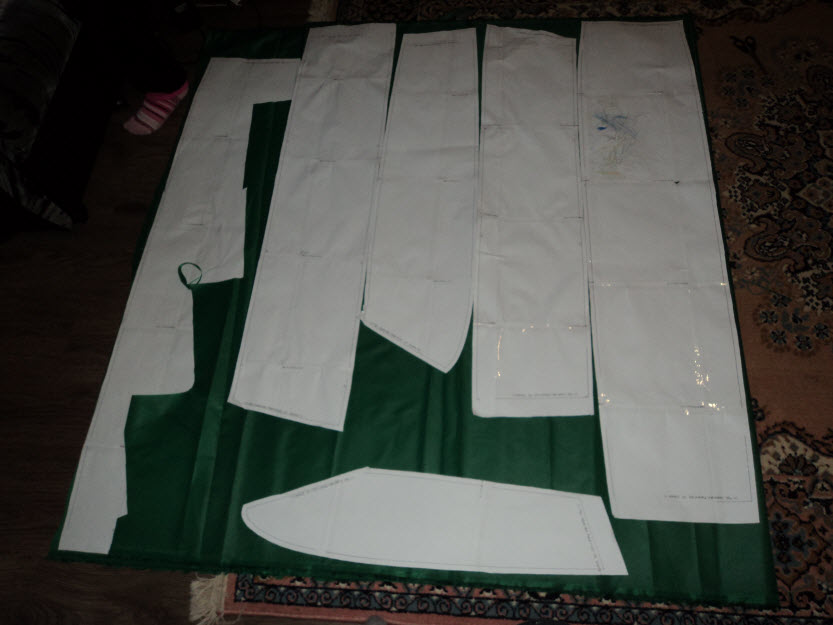 Потихоньку вырезаю детали, сразу по две, прикрепил выкройку иголками и режу ножницами, паяльником вонять нельзя Confused , думаю потом кромки всё таки паяльником приплавлю, хотя ткань как клиёнка только внаглую можно растрепать.