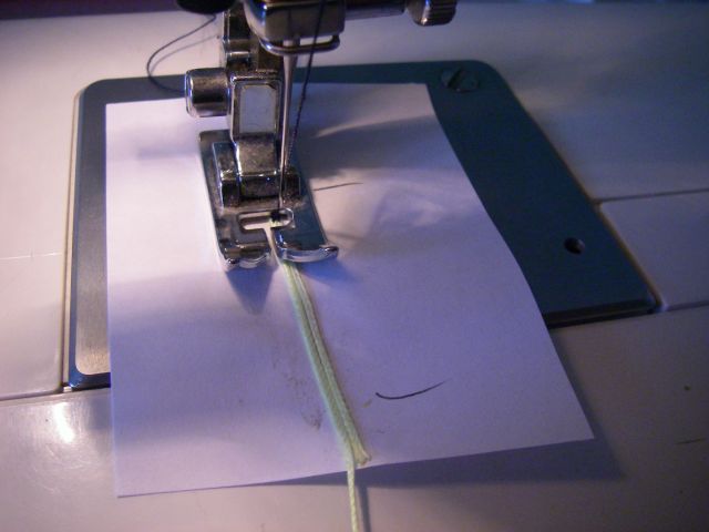 Для этого петельку клею ПВА к листочку бумаги, при склейке стропку сплющиваю, чтобы легче попадать иголкой. Шью зигзагом, моя машинка позволяет произвольно менять ширину зигзага и его шаг. Скотч не использую, т.к. его клей прилипает к иголке и получается "борода".