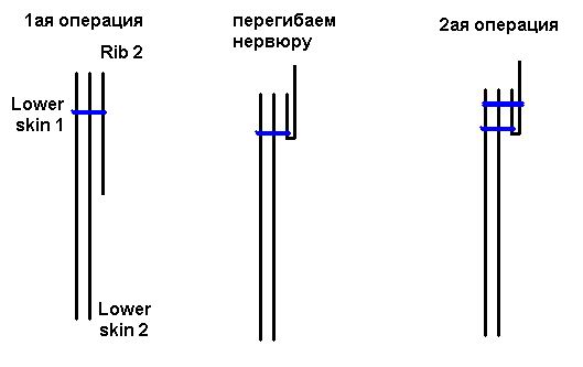 Как показано на рисунке способ соединения нижнией части с нервюрами и верхней отличается.