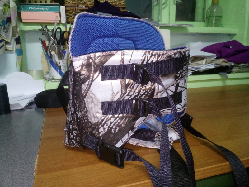вот! сшил трапик, материалы брал у Стаси( и крюк тоже) за что ей огромное спасибо, ткань oxford 600D ремешки на ноги-50мм стропа в чехле, коврик гимнастический 10мм, ремешки под крюк 34мм (концы зашью в чехол), бык из таффеты+вспененный ПЭ 4мм (вышит нитками по контуру) пряжки на 30мм, фастексы 50мм, липучка 50мм, подкладка внутрь (еще не пришита) от чехлов автомобильный сидений. Брал за основу проект Портного (за что ему Большое спасибо)