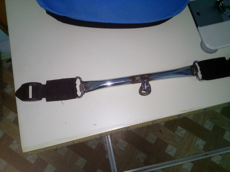 Трапа шилась быстро и чисто на импровизации. Чтобы поскорее кататься. Поэтому пока, в место крюка, установил U-образную петлю. Не было под рукой сварки.