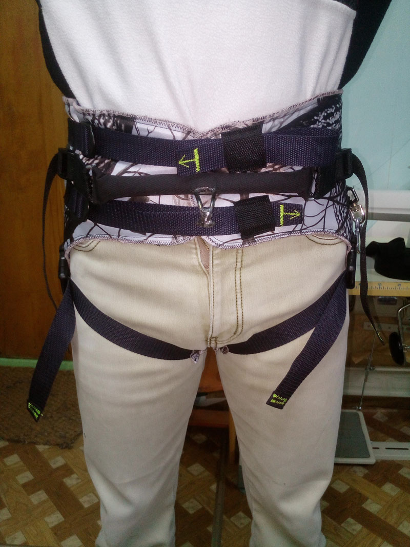 В общем, выполнена она была на основе всё тех же ремней и стальных пряжек от парашютной подвесной системы. Только на ножных обхватах поставил пластиковые.