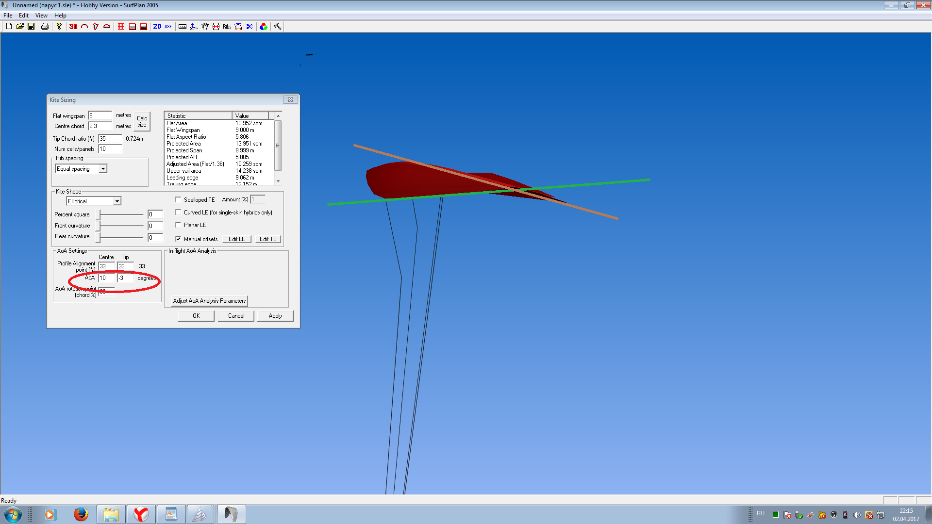Желаем тебе успехов!Для проектирования парусов есть специальная программа sailcut CAD 1.3.5 Может быть в итоге т.самое потому что вроде прога родственная сёрфплану,а может какие тонкости есть или просто удобнее.Попробуй в нее забить свои параметры-что получится?