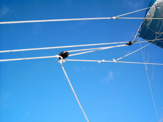 Кайт же управляется всем крылом одновременно. Натягивание ряда В будет происходить при минимальных углах атаки, т.е. когда нужно поставить кайт в максимально переднее положение по ветровому окну. Ухудшение же аэродинамического качества в этот момент приведет к увеличению лобового сопротивления и снижению подъемной силы за счет увеличения выпуклости нижней плоскости фойла. При этом кайт уйдет назад и вместо депавера получим снова увеличение угла атаки и, следовательно, тяги.