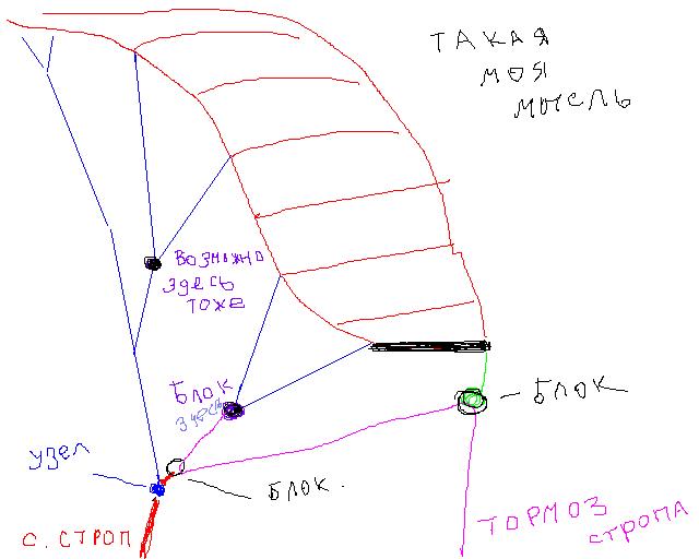что-то типа боу строповки.. пока в варианте как на кайтах Sonic, с блоками. стропы управления обычные - как на всех балонниках и арках.