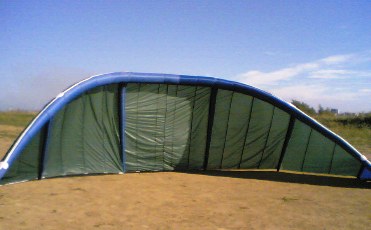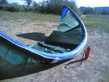 Кое-что подправил,жду подходящей погоды.А так вкратце первые впечатления довольно не плохие.Что касается летных качеств,то из-за большого размера,кайт довольно спокойный(не путать с тормознутостью).если в зените висит,то значит и прилично тянет.Довольно приятный момент,это когда кайт над головой,и если потянуть за планку,то он спокойно отрывает с земли и сливая по ветру плавно переносит на какое-то растояние...Обратный старт не пробовал,на земле жалко,но думаю,если прицепить пятую стропу,то все получится...Из неприятных моментов- это подготовка перед стартом,процесс надувания...Это не долго(насос большой) но всеравно ... Да и вааще ,на земле как-то аккуратно с ним нужно....