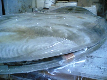 ... с разделительной линией у меня получилось очень просто.Я использовал гипсовую форму.Уложил в нее болванку,накрыл ее листом тонкого двп с отверстием по контуру доски в зоне максимальной толщины,опять заклеил стык скотчем,смазал все разделителем,а потом укладывал стеклоткань.Для изготовления второй половины,используется готовая первая часть пластиковой формы.Уложил в нее болванку,смазал все разделителем(лист двп уже ненужен) и стал опять формовать стеклопластик.Т.е. линия раздела образуется листом двп.