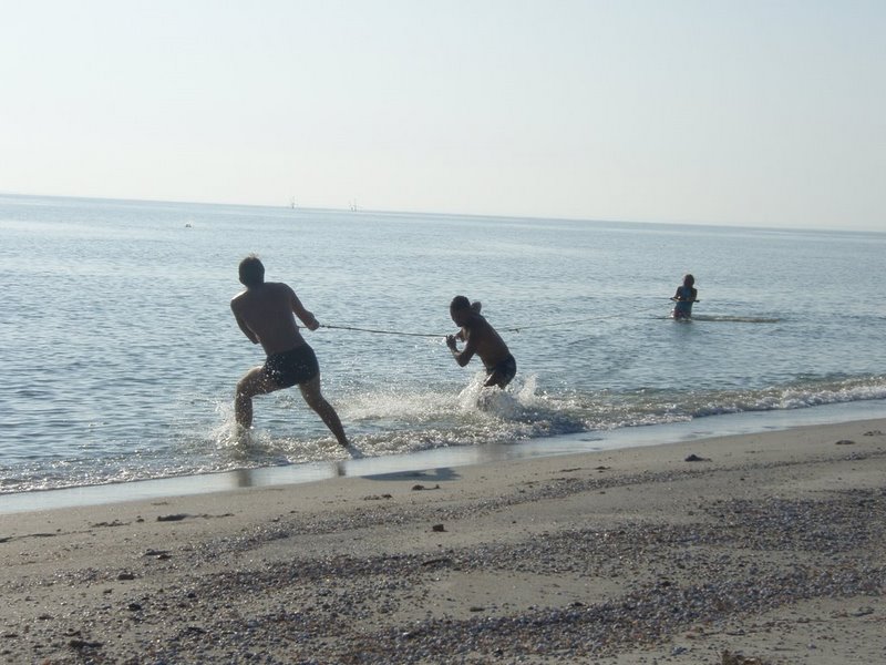 В день абсолютного штиля удалось немного покататься на кайтборде ,а теперь внимание! кайтборд буксировали ДВА человека,бегушие по берегу! Cool .У меня получилось сразу(может не такой тяжелый) даже вырезался галсами.Был бы третий в сцепке,то вааще огого было б....Обещали на днях прислать видео этого действа,потом скину на ютуб....а так кое что из фото:
