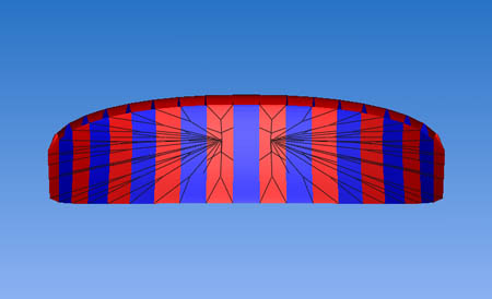 Обьясняю.Форма с прямой задней кромкой немного неестественна для парафойла. Края пытаются вылететь вперед, растягивают заднюю кромку.Если немного не попасть с длиной кромки, получается ложка.При прослабленных стропах крыло ныряет вниз. Потом конечно откроется, но может приложить.Идеальна форма с небольшой стреловидностью.Я делаю так, что 70% хорды сидят на одной прямой. При большой вогнутости средней линии профиля крыло требует большого установочного угла, иначе давления на заборнике не хватает. Все последние модели парапланов имеют вогнутость близкую к 1%. Дополнительная вогнутость создается натяжением задних строп. Летать будет и эта модель, просто энергию будет расходовать больше. Цепная линия это линия по которой проходит максим. нагрузка на нервюре, она близка к параболам, опирающимся на точки прихода строп. Жесткость и прочность нервюры увеличиваются многократно, а работы там немного.