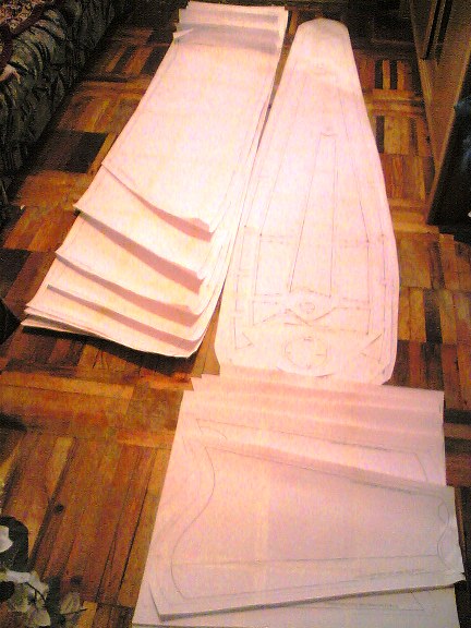 В крое купола решил немного поизвращаться,задние части панелей(имеющие прямые линии стыковки),между рибами будут вырезаны из цельного кустка ткани,расположенной поперек.Это позволит усилить заднюю кромку.Естественно по ТЕ будет добавлена более плотная ткань или лента.