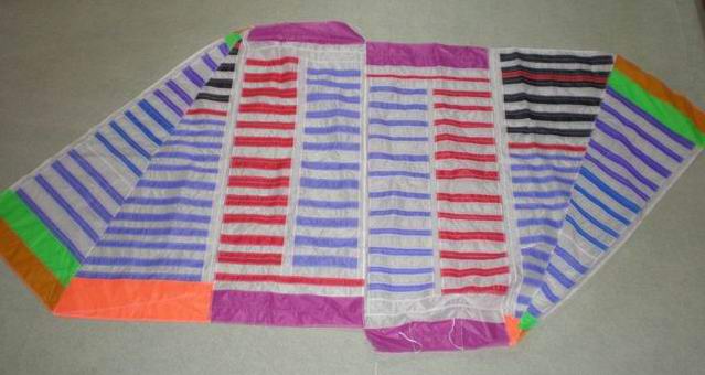 Rolling Eyes все делается по точкам,делается рисунок или форма ,на ней ставятся точки соприкосновения ,либо нет--на любителя Всё равно кайт шьется полотнищами --тоесть этото рисунок нужно перенести на выкройки полотнищ,ну а потом сшивать каждую полоску и потом состыковывать при сборке кайта--потом и получится счастье фигура с рисунком.!! Very Happy