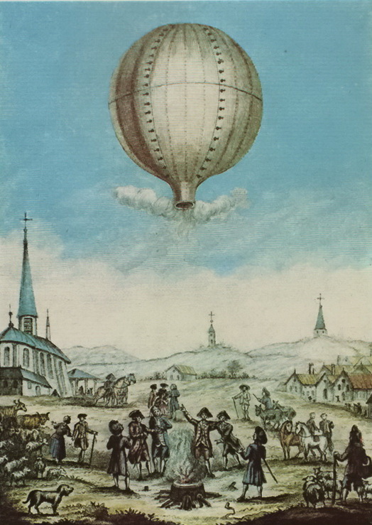 Братья Монгольфье жили в Анноне, городке в окрестности Лиона. Они были одержимы идеей полета и пришли к мысли, что если надуть бумажный мешок горячим воздухом, то он может взлететь. В конце 1782 г. братья проделали два предварительных эксперимента, которые показали, что большой мешок, наполненный дымом от костра, должен подняться вверх. Первую публичную демонстрацию братья устроили в Анноне 4 июня 1783 г. Воздушный шар представлял собой сферический льняной мешок, оклеенный бумагой. Он имел в поперечнике 11 м и весил около 227 кг. Шар надули над костром, в котором жгли мелко нарезанную солому. Когда его отпустили, он поднялся довольно высоко и спустился через 10 мин, пролетев за это время около трех километров. Полет произвел на зрителей большое впечатление, и весть об этом эксперименте облетела Францию и всю Европу.