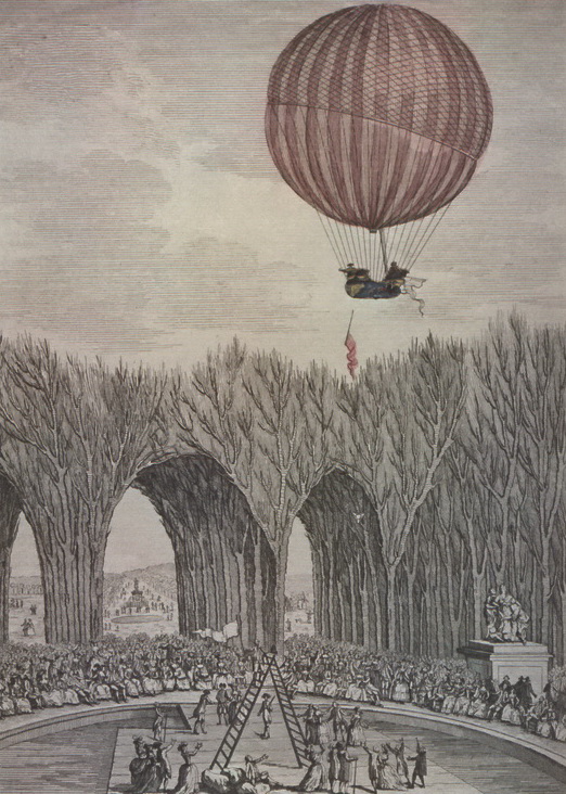 Впервые свободный полет человек отправился на воздушном шаре, который поднялся из сада замка де ла Мюэт в западном пригороде Парижа 21 ноября 1783 г. Его пассажирами были молодой директор Парижского музея науки Пилатр де Розье и армейский офицер маркиз д'Арпанд, имевший широкие связи при дворе Людовика XVI. На наполненном горячим воздухом шаре, построенном братьями Жозефом и Этьеном Монгольфье, они провели в воздухе около 25 мин, пролетев за это время почти 10 км, И благополучно приземлились в открытой местности вблизи дороги на Фонтенбло.