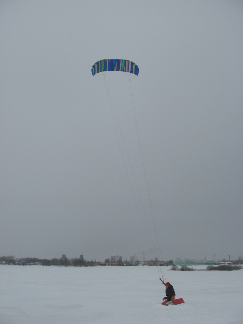 Но приятель катался на балонном кайте шестиметровом, ахренел, ему пофиг, и катался и прыгал. Мне же просто постоять с кайтом в зените не удалось.