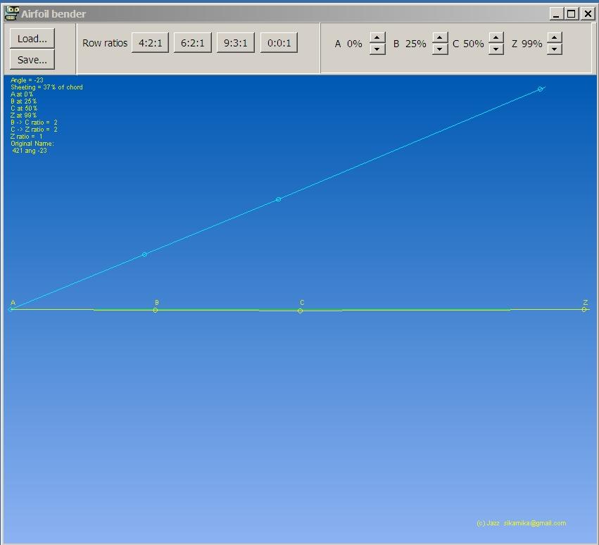 Если теперь установить А поближе к В - примерно 20 - т.е. получим 20-25-50-100(99) - То сново в программе неизменяющийся профиль. А это не есть правильно. Соотношение АВ, АС и АZ уже не 4:2:1 - а линия по прежнему прямая. Може я не прав, но я в сомнениях.