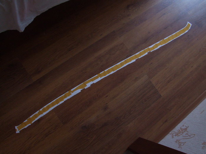 А пока клеим то что есть. длинна доски 152 см, а листы продаются только 120, соответственно пришлось удлиннять и клеить в торец, хорошо что он профлилированный и слкеится достаточно прочно