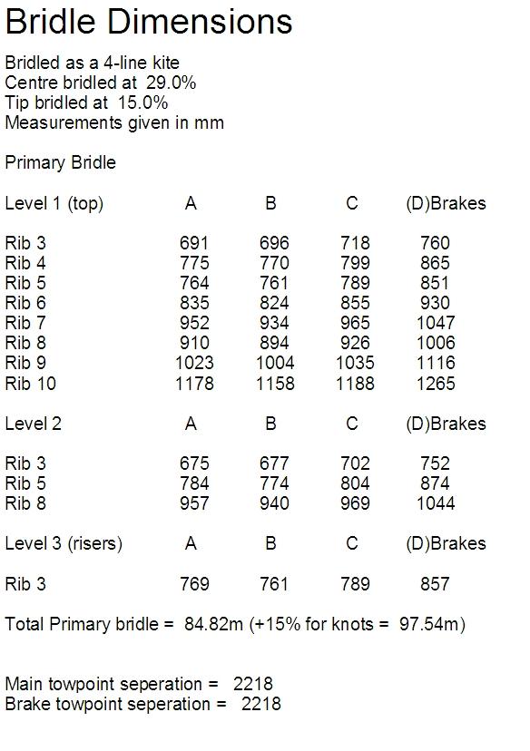 я когда застропил свою восьмерку столкнулся со следущей проблемой:: по проекту нарезал строп размер точь в точь, материал оригинальный от панша, вообщем собрал все как полагается,запуск....взлет состоялся,зенит все как положено ,но между рядом АиВ складка по всему кайту,пробывал и так и сяк ни чего не получается не уходит складка ,взял рибу бумажную ,которая находится в одной плоскости со стропами , разложил ее на полу , ссуммировал величины строп, отмерил их на полу , и увидел что ряд В и С сошлись ,а ряд А на 5-6 см не сходится, короче он на 5-6 см., в результате пришлось добавить 5-6см на все стропы ряда А , все модель полетела складка ушла, это видимо ошибка программы не думал я что такое случится..