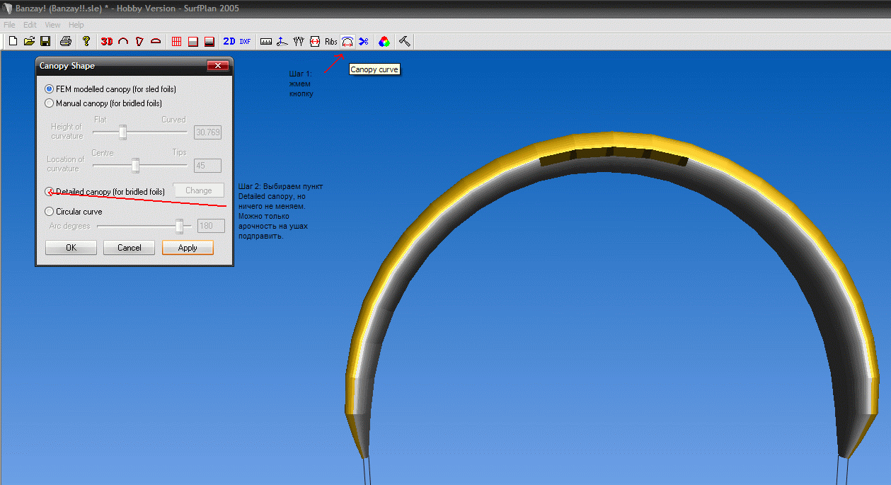 Привет вам! может арки уже и не в моде, но все же интересно нельзя ли решить проблему с "банановой" задней кромкой применив в конструкции купола Mini-ribs? Surfplan отлично прорисовывает и выкройки и места вшивания. Таким образом т.н. "бананы" разделяться пополам,станут узкими и законцовка крыла существенно приблизится к проектному профилю.