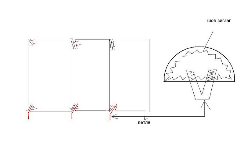 я имел ввиду ленты не по шву вести, а диагонально вверх от петли, как на нижнем рисунке нервюра, а на ней пунктирная линия треугольниками идут усиления, это и есть усиления на рисунке а между ними отверстия для прохождения воздуха, чтоб купол быстро наполнялся!!! Все швы шьются без усилений, там и так три слоя ткани хватает им крепкости.