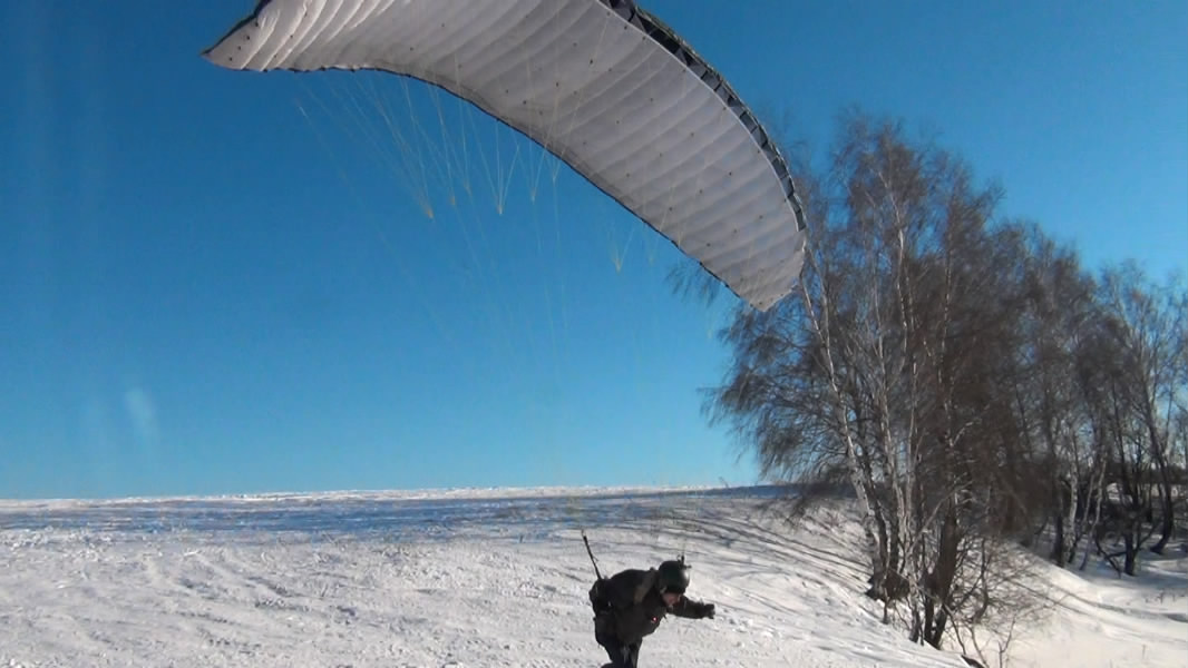 А вот тут хорошо видно, что центроплан несет, а сложенные уши болтаются позади (пилот в кадре летит, просто на фоне снега это плохо заметно):