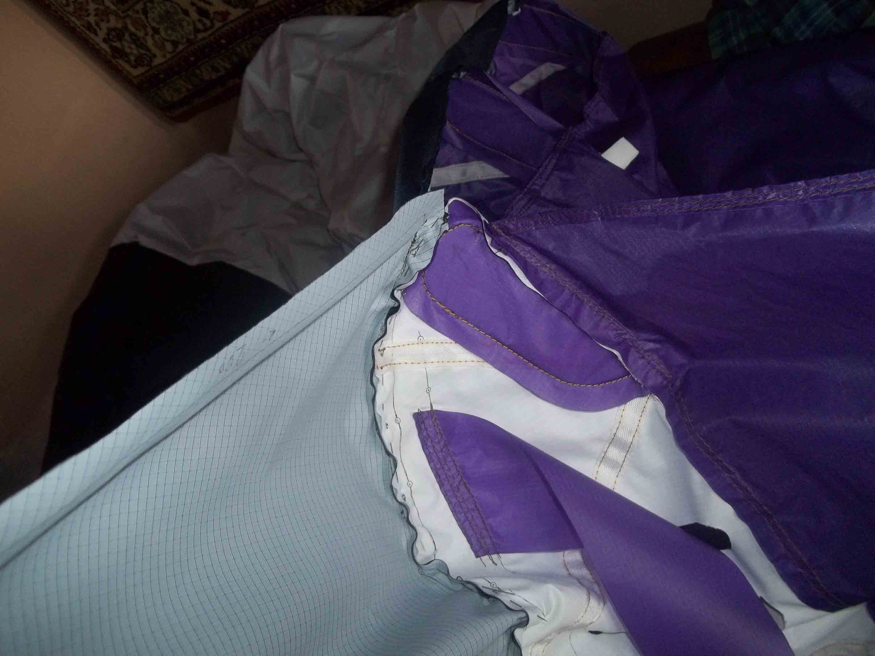 вы не так накладываете реперные точки(меряете, смотрите), они накладываются одна на другую, а не листы рядом(тоже так как-то помню испугался), попробуйте наложить их и соединить иглами сойдется, бывают портаки с распечаткой(на стыках_, тут тоже надо точки подгонять, еще шить надо было с переди начинать (как я понял вы шить начинали с задней кромки, поэтому не сошлось), поэтому у вас не сошлось, сзади я делал так, после последней лямки идет последняя реперная точка по ней везде пояльником резал, например если она везде стоит на 1 см. а ткани больше болтается, то режим паяльником, как направляющая я использую стальную линейку, бывает ткань тянется и получается в конце на кромке ткань не совподает немного, тут главно все три ткани вести с одинаковым натяжение при шитье и очень точно, милиметр в милиметр используя иглы и пальцами регулировать, т.к. закрытые секции это геморой... Слышал что бывают портаки сзади по 1.5 см. Наложите два лекала с точками, должно сойтись одна в одну, по округлости крутить надо лекала, я раньше тоже так испугался помню, особенно когда так как вы ткань прикладываешь, то вообще страшно, потом вспомнил, что если наложить например мяка на лямку точки на полотне то сойдется, бывает...главно не спешить.. Припуски правильно стыковали, хотя по идее должно было все и так сойтись, видимо ткань тянется(может какуюто одну ткань тянули сильнее при шитье или неровно сшито(не совпадают местами стыки трех полотен, мм. там, мм. здесь вот и портак... Еще надо делать все семметрично, иначе закрытые секции тоже поплывут на носике.