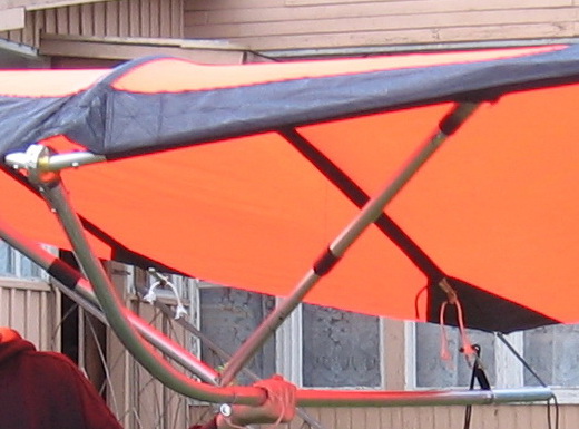 С первого взгляда это вызывает восторг!Молодец! После подробного рассмотрения обнаружил складки по бокам и завороты, но это мелочи.Я подобрал материалы,сделал sle файл,но остановился из-за нехватки времени. Опиши пожалуйста основные параметры (площадь,улиннение и т.п),расскажи как гнул трубы,из чего выполнены боковые латы и как они соединены с трубами переднего края? И еще бы посмотреть фото общего вида каркаса без тряпки и крупные фрагменты узлов,если не трудно плиз!