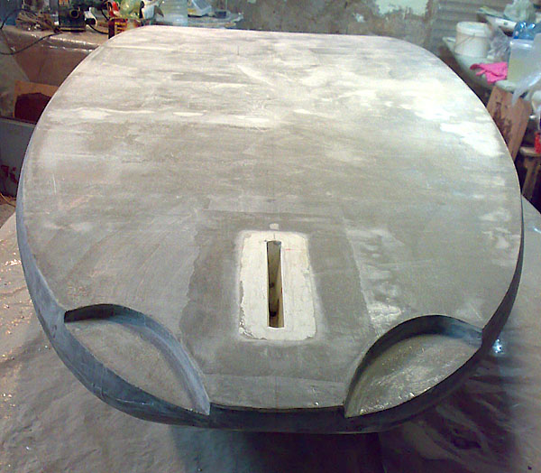 5.Шпаклевал той же эпоксидкой с добавкой двух дивных компанентов:МИКРОСФЕРА-стекляные шарики 20-50 МКМ диаметром.Смола делается лёгкой и обьёмной.И АЭРОСИЛ-перетёртый в пыль пенопласт-он даёт вязкость и прочность.Заводишь порцайку смолы,засыпаеш микросферки побольше,тщательно перемешиваешь и до нужной густоты аэросильчиком её,аэросильчиком...Шпатель и вперед...